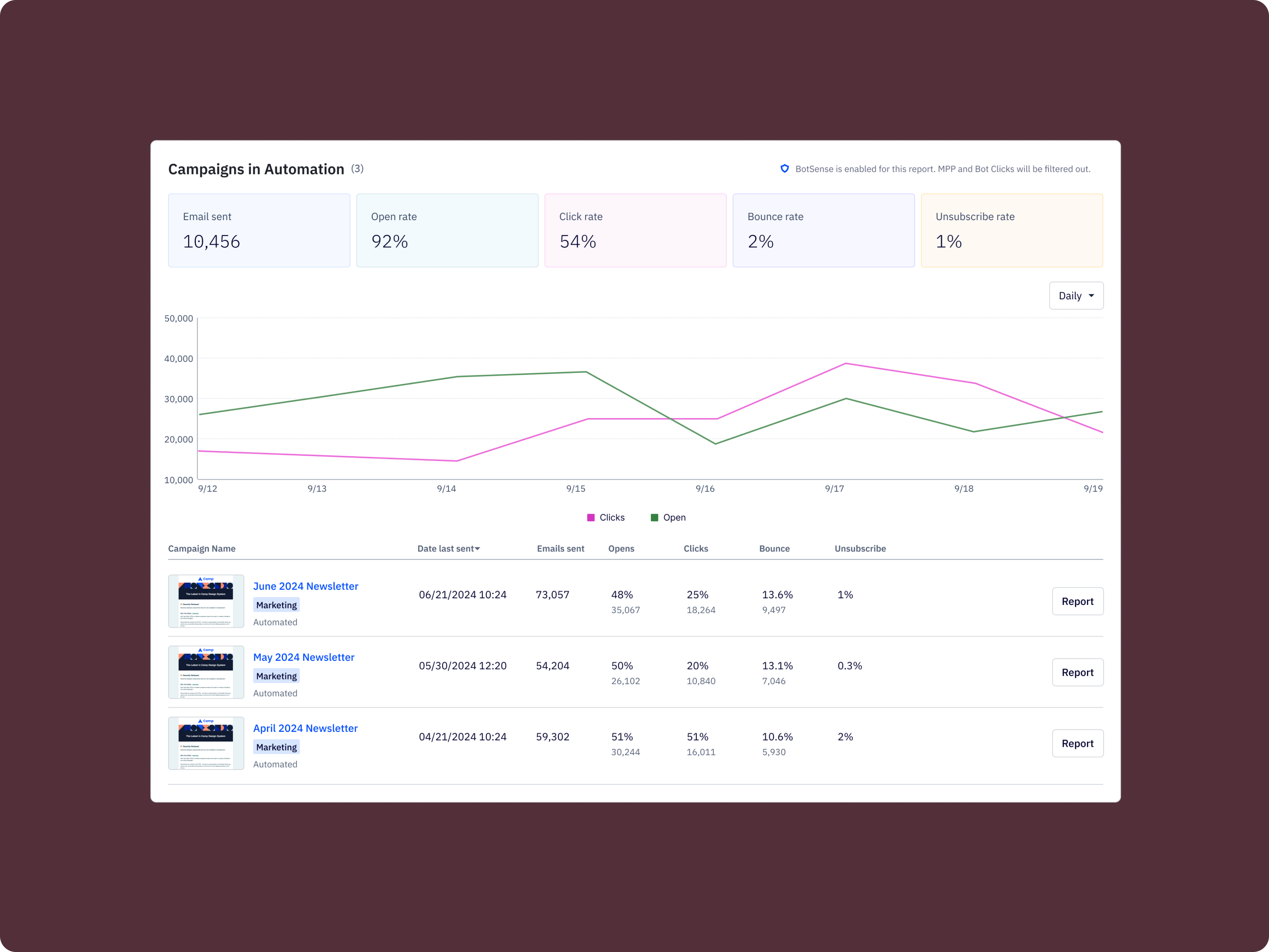 From our research, we learned users want a breakdown of how each automated campaign is performing.