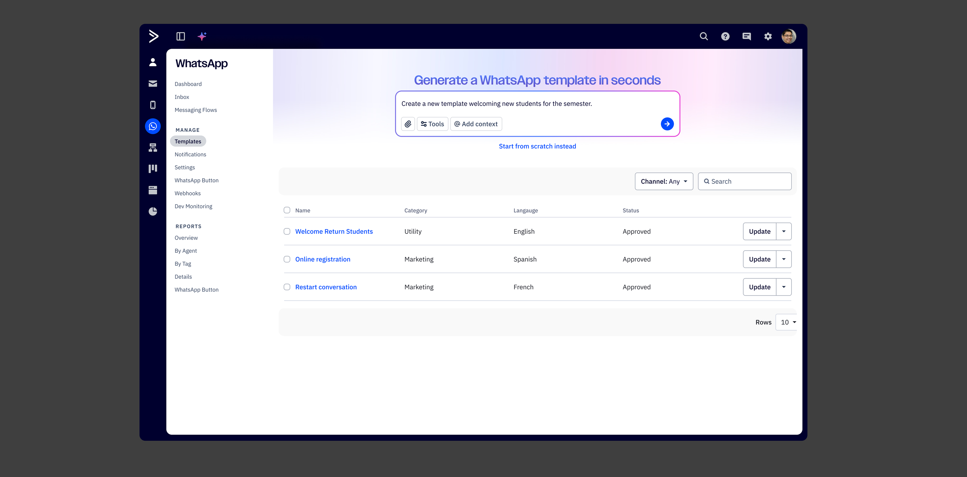 WhatsApp Business templates are essential for proactive customer outreach, but creating them has always been frustrating. Meta requires pre-approval for all outbound messages, with strict formatting rules, character limits, and content guidelines that vary by template category. Customers struggled to write compliant copy, often facing repeated rejections without clear guidance on what to fix. The process demanded too much specialized knowledge and slowed down campaign launches.